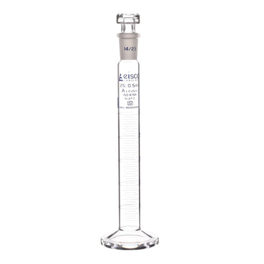 Mixing cylinder with round base and standard taper joint• Includes hollow glass stopper• Calibrated to Class-A volumetric tolerances• Made of high ...