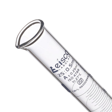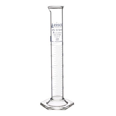 25 ml borosilicate graduated cylinder Class B 0.5 ml graduations Tolerance ±0.5 ml Made from high quality 3.3 borosilicate glass Hexagonal base f...