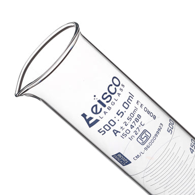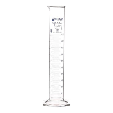 500 ml borosilicate graduated cylinder Class B 5.0 ml graduations Tolerance ±5.0 ml Made from high quality 3.3 borosilicate glass Hexagonal base ...